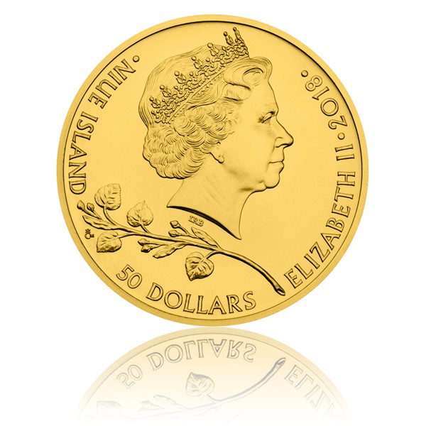 The reverse side of the coin bears Czech two-tailed lion guarding the St. Wenceslas crown together with the flaming St. Wenceslas eagle on the shield in an untraditionally realistic conception. The obverse side belongs to the attributes of the island of Niue, which provides the Czech Mint with a foreign license to coin the investment coins. These are the name and portrait of Queen Elizabeth II, the year of the issue 2018 and the nominal value of 50 DOLLARS (NZD). The composition of the obverse side is then closed by a branch of lime, together with the Czech national tree.