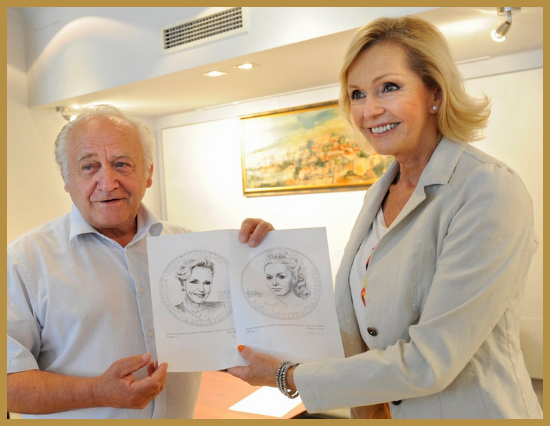 Her first film role (the terribly sad princess) became the model for the reverse side of the medal. When comparing the beautiful face of the princess with the current portrait of the singer depicted on the obverse side one cannot but notice that Helena Vondráčková, the same as her hits, does not grow old!