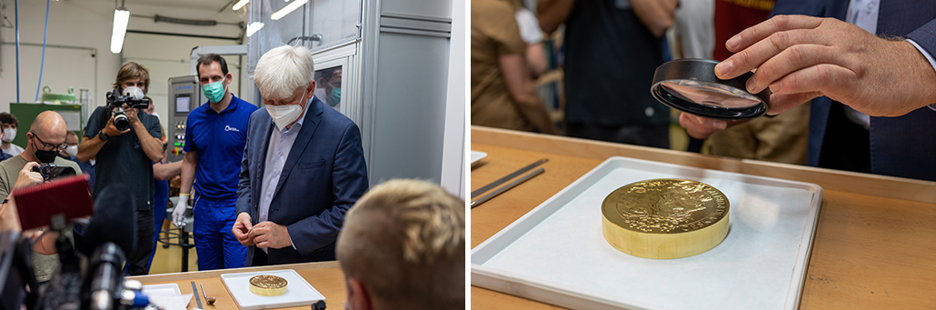 The idea of minting larger diameters than the usual 90 millimetres and weighing more than 1,000 grams was conceived about three years ago. "At the time of working on a high-weight coin for the CNB, weighing 130 kilograms of gold, but which was created using the engraving method, we found that there would be interest among investors in a higher weight than usual and this way was promising," explained Bachtík. For the Czech Mint, however, this meant not only acquiring a custom-made press. Only the testing associated with the production and implementation of the hologram on gold took a large chunk of time.
