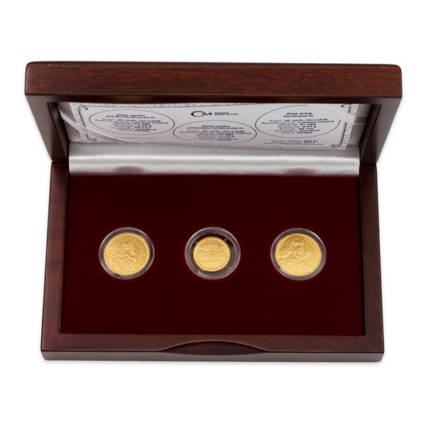 The Czech Mint prepared a collector's treat for true numismatics on the occasion of the 390th anniversary of the coronation of Ferdinand III. Habsburg by the Czech King in 1627. A set of three gold ducat mintages, consisting of one modern ducat and two replicas of rare historical specimens.