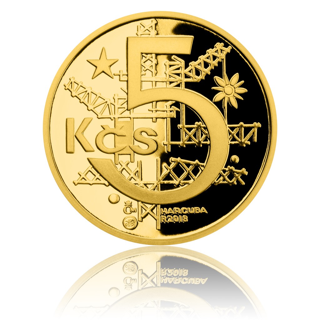 The commemorative medal, with which the academic sculptor Jiri Dostal pays tribute to his mentor and friend, is the fourth coin in the set. The obverse side carries Harcuba's profile, whereas the reverse side carries motifs inspired by the five-crown and Harcuba's first commemorative coin on the occasion of the 100th anniversary of the foundation stone of the National Theater.