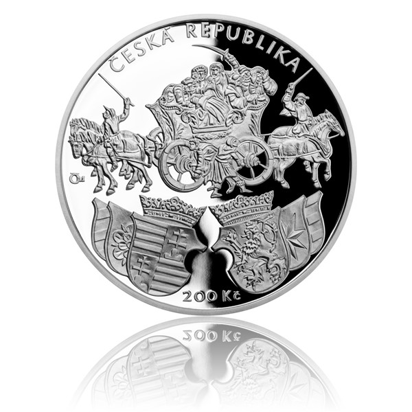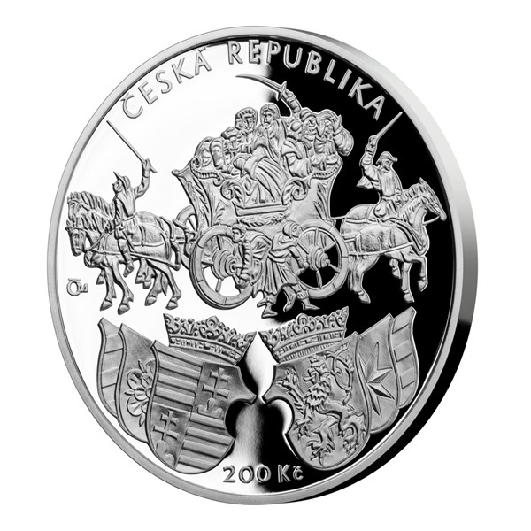 The winner of the CNB Art Competition academic sculptor Zbyněk Fojtů has become one of the most successful czech medal makers. The committee of special interest touched this time so much that its proposals won first and second place. The winning reversal presents a detailed picture of the map itself, along with the inscriptions of KLAUDYAN MAP, 1518 and 2018. The reverse side is then dedicated to the legendary scene with a car, a series of periodical heraldic symbols, the nominal value of 200 CZ and a copy of the CZECH REPUBLIC.
