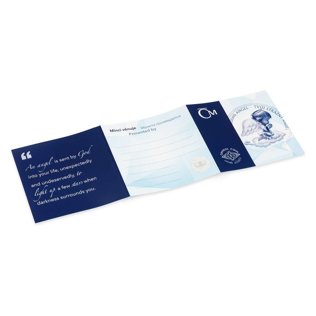 The coin comes in a limited load of 600 pieces and represents an original gift for a number of occasions. It is stored in an elegant packaging that can be used as practical frame for exposition. There is also a Czech-English-Russian certificate of authenticity where you can write your dedication and which is dominated by the English quote of preacher Phil Bosman, whose translation is: "The angel is the one God sends you to life unexpectedly and undesirably to light up a few stars when everything becomes dark."