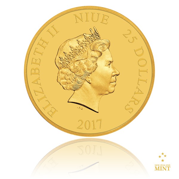 The reverse side of the coin captures Bobb's last struggle on board of a desert vessel from which the convicts were to be thrown into the Saracle's pit. The bounty hunter pulls a blaster, but Luke Skywalker crosses him with a light sword. The coin publisher is the island of Niue, whose details appear on the obverse side of the coin. There are the portrait and the name of Queen Elizabeth II, the year of the issue of the coin 2017 and the nominal value of 25 DOLLARS (NZD). The art form of the officially licensed coin is the work of the design team of the New Zealand Mint.