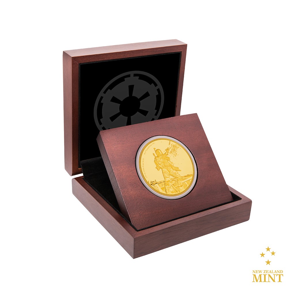 Among the most interesting figures from the Star Wars universe are undoubtedly the hunters of rewards. In film adventures, they have not had much space, but they are more involved with accompanying books or serials. The gold coin dedicated to Bobba Fett is also popular among them.