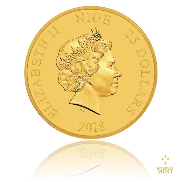 The reverse side presents Jabba's distinctive face with big eyes and even bigger mouth. The officially licensed coin was issued by Niue Island and its obverse side bears the necessary attributes, which are the name and portrait of Queen Elizabeth II, the year of the issue 2018 and the nominal value of 25 DOLLARS (NZD). Relief is a collective work of the New Zealand Mint creative team.