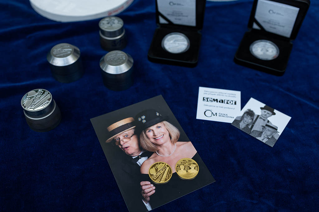 Výrobní ředitel mincovny Stanislav Bachtík uvedl, že je to první taková jejich kolekce. "Samozřejmě podobné cykly děláme. Dělali jsme třeba cyklus pana Gotta, který byl ztvárněný jako zpěvák, malíř a fenomén, ale podobná série z divadelního prostředí dosud nevznikla," uvedl Bachtík. Emise je limitovaná, pro každou medaili z minisérie mincovna vyrazí ve zlatě 200 kusů a ve stříbře 500. Z každé prodané stříbrné medaile půjde 200 a ze zlaté 500 korun pro divadlo Semafor. Zlatá medaile se prodává za necelých 42.000 korun a stříbrná stojí 2490 Kč.