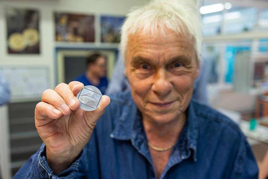 Výjimečná zlatá medaile České mincovny o hmotnosti dvou trojských uncí vzdává hold Janu Saudkovi a jeho obrazu s názvem Marie č. 1. Ve stříbrné verzi jde o medaili s průměrem 37 milimetrů a hmotnosti jedné troyské unce. Uznávaný fotograf si přijel do Jablonce nad Nisou v úterý 29. června vyrazit první kus. Do České mincovny jej doprovodila manželka Pavlína. „Je to úžasný tvůrčí pocit a navíc tu na mne působí skvělá energie,“ poznamenal při ražbě Jan Saudek.