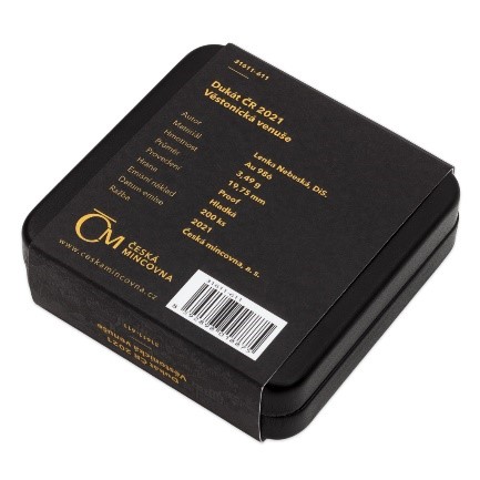Do černých kožených krabiček s barevným přebalem budou přednostně baleny produkty s datem emise od roku 2021. S tím, jak budeme postupně vyčerpávat skladové zásoby starších krabiček, se budou do nových krabiček balit i doražby produktů s dřívějším datem emise. Vzhledem k velkému množství produktů se tak bohužel může stát, že fotografie balení, která je uveřejněna na e-shopu, nebude odpovídat skutečnosti. Pokud tedy například místo zlaté papírové krabičky obdržíte zakoupenou minci v černé kožené krabičce, vězte, že nejde o chybu. Prosíme vás o shovívavost a děkujeme za pochopení!