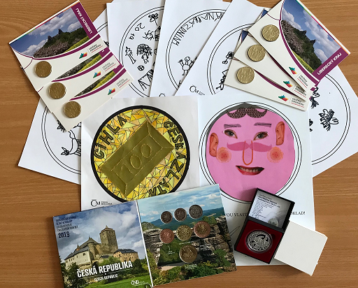 Stánek České mincovny, kde si příchozí vyzkoušeli jízdu na handy cyklo trenažéru, mohli zájemci najít v Liberci na náměstí Dr. Beneše a v Jablonci na Tajvanu. Vedle omalovánek s českým lvem a pastelek si děti zkoušely namalovat svou vlastní minci. Někdo na místě, někdo si vzal hrací kartu domů a do 27. července ji doručil na naši adresu. Přišla krásná kreativní díla, ze kterých jsme ta nejlepší ocenili. Vítěz je osmiletý chlapec z Liberce a na památku získává Sadu oběžných mincí 2019. Za stříbrnou příčku posíláme pětileté holčičce za koláž postříbřenou medaili měsíčního znamení a kolektiv z jablonecké mateřské školy dostává naše žetony.